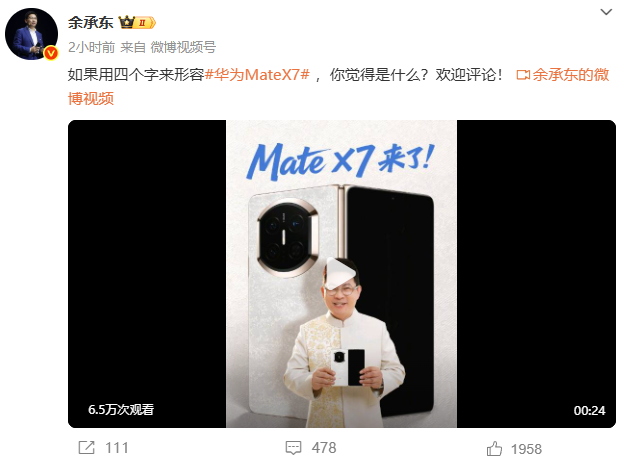 华为常务董事、产品投资委员会主任余承东于2025年11月18日公布了华为Mate X7的展示视频东方优配东方优配,该产品将于11月25日正式发布。